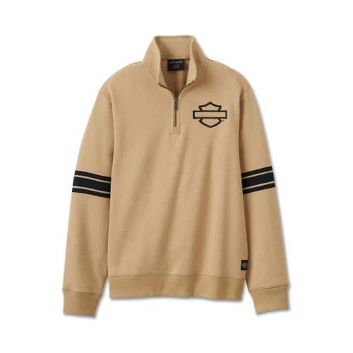 Timeless style meets endless comfort in our Bar & Shield 1/4 Zip Fleece. Built from a cotton/polyester blend, this men’s quarter-zip pullover delivers a relaxed fit. It features top-applied sleeve striping and embroidered graphics for an elevated look that’s 100% Harley-Davidson.