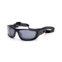 Matte black injected front, black foam and smoke mirror lenses.