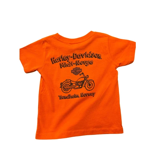 T-skjorte med Harley-Davidson Midt-Norge logo på ryggen.