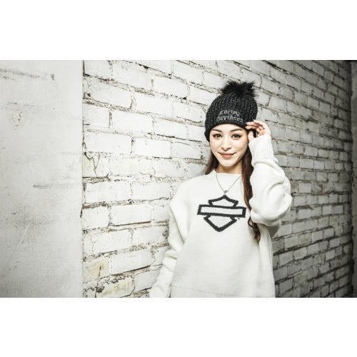 Level up your look in frigid temps with our Old English Pom Beanie. This special-edition women’s hat is made from an acrylic/polyester blend for warmth without the itch of wool. It stylishly features a faux fur pom and metallic threading woven in for added sheen. Its fold-over cuff gets a hit of embroidery for a classic H-D look. Snag one before they disappear.