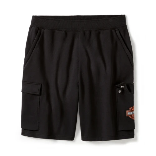 Give your sporty look an H-D upgrade with our Essential Fleece Cargo Short. Its classic, walking-short silhouette is cut from heavyweight cotton/polyester interlock for longwearing comfort and durability. Features a move-with-you waistband with drawstring, plus secure pocket space for stashing essentials. Finished with an embroidered hit of our most iconic graphics.