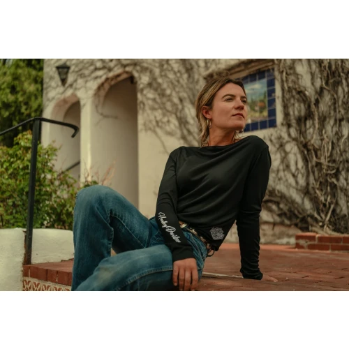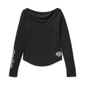 Flaunt your moto-loving style in our Essential Off The Shoulder Top. Crafted from a ribbed modal/polyester blend with a hit of spandex for added stretch, it has a lightweight feel that you’ll want to keep wearing. This women’s top features a flattering off-the-shoulder neckline, thumbholes at the cuffs, and a shirttail hem that visually lengthens your leg line. Minimally branded with an embroidered hit at the front hem and parked on the right sleeve.