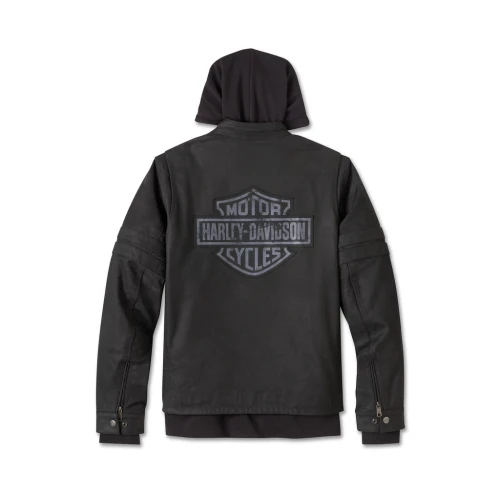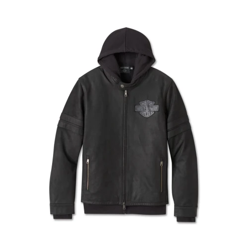 | Materiale | 100% midweight buffalo leather. 100% polyester taffeta lining. Light polyfill (jacket). 60% cotton, 40% polyester heavyweight fleece (hoodie). |