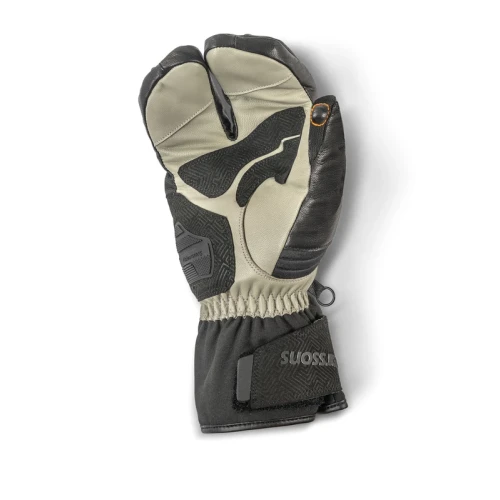 Varm, vattentät trefingershandske i en kombination av getnappa och textil. Böjda fingrar, Innoborn® 40g i handflatan och 180g på överhanden samt formpressade knogskydd.