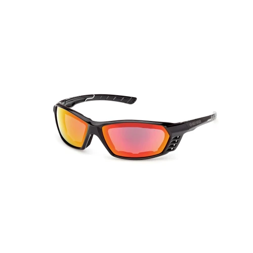 Shiny black injected frame, black foam and smoke with orange lenses