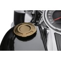 Styled to match the custom right-side fuel cap, this left-side decorative tank cap proudly completes your custom look. The easy-to-install cap replaces the Original Equipment trim, and provides the rider with a symmetrical view over the tank.