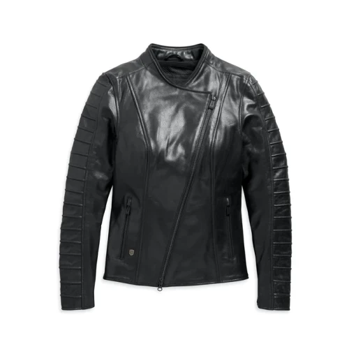 Ready to get away from it all? Zip up the Ozello Perforated Leather Jacket and go for it. This women's leather motorcycle jacket is engineered to keep you cool with countless pinhole perforations that help vent and release hot air, Coolcore™ back lining, and vented action back. So, a commute in the urban jungle on a hot day? No sweat—literally. It's loaded with features, too: sewn-in armor, jacket-to-belt snaps to banish jacket ride up, and much more in the bullets. Sleek, all black hardware and unique "roper" sleeve embossing adds to the stealthy mood.