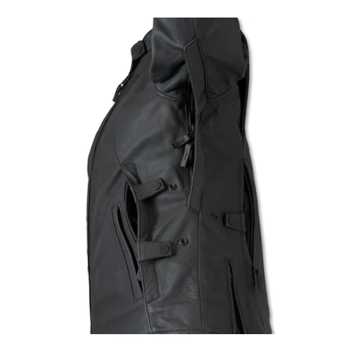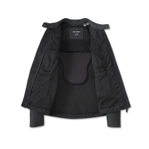 Redefine breathable riding comfort Paradigm Triple Vent System 2.0 Leather Jacket. Its cow leather build is engineered with our upgraded Triple Vent System 2.0. It has three strategically placed vents, an underarm airflow diverter, and a covered front center zipper extension all designed to drastically improve airflow, even on motorcycles with fairings and windshields. It’s wisely enhanced to include an extended mesh placket with a magnetic component that flips back and stays securely in place, plus dual snap waist tabs for more adjustable comfort. For superior breathability and impact protection that feels weightless, this jacket is equipped with D3O® Ghost Armor at the elbows and shoulders (see below for back armor purchase options). Its styling features graphics and detailing in reflective material for added visibility.