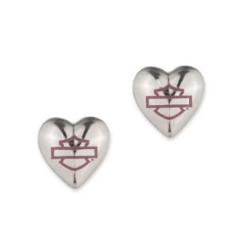 Pink Enamel Bar & Shield Heart Stud Earrings