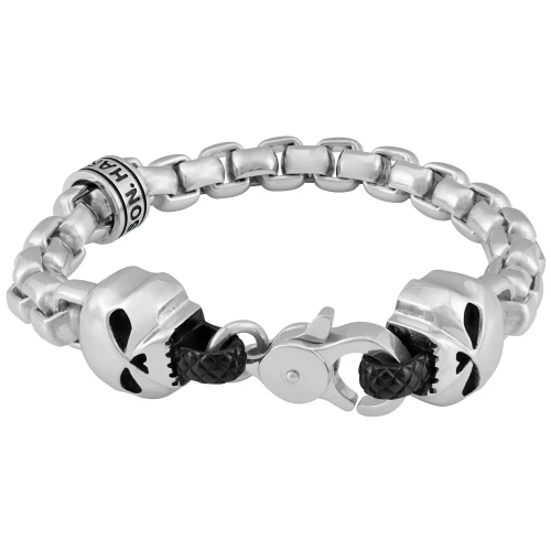Steel Rolo Chain Double Skull Bracelet