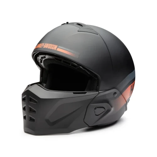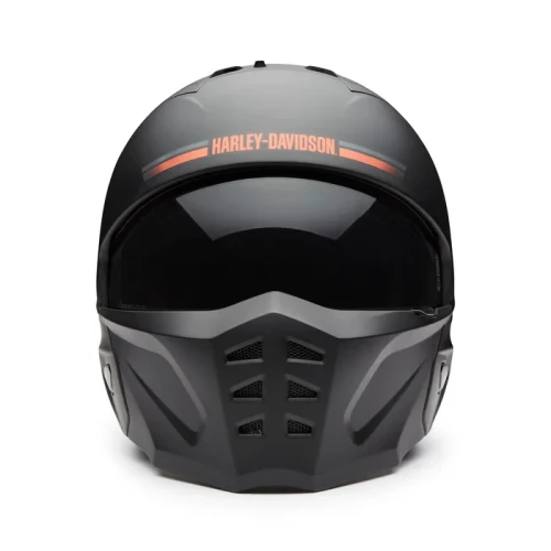 Give yourself options without sacrificing comfort and protection in the H-D® Ultra X16 2-in-1 Helmet. Its design is engineered to be two styles in one, depending on your riding preference. It features a venting system that keeps fresh air flowing in through the top and out through the face mask holes. You’ll see the road more clearly with its scratch-resistant face shield that also protects your eyes from harmful UV rays. The inside has 3D contoured Kwikfit® cheek pads to accommodate eyewear, a moisture-wicking lining that’s easy to remove and clean, and speaker pockets for Bluetooth® communication so you can connect, navigate and play tunes while you ride. Style wise, its Matte Harley Black finish rides along with our graphics for a sleek moto look. Learn more from the specs below, then order ASAP.