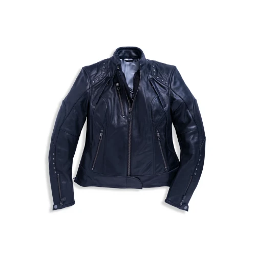 Ride like royalty at every turn in our Queen II Asphalt Women’s Jacket. Its soft cow leather build is engineered for functional performance with features like perforated panels and vented front zipper to welcome airflow and Safe-Tech® CE-certified shoulder and elbow protectors. Its distinctive, moto-inspired style features studded accents and our most beloved branding embossed on back. For more details, see its specs below…